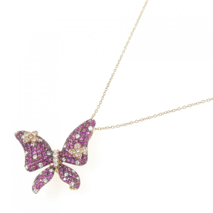 Au750 Butterfly Ruby Diamond 2way Necklace Brooch