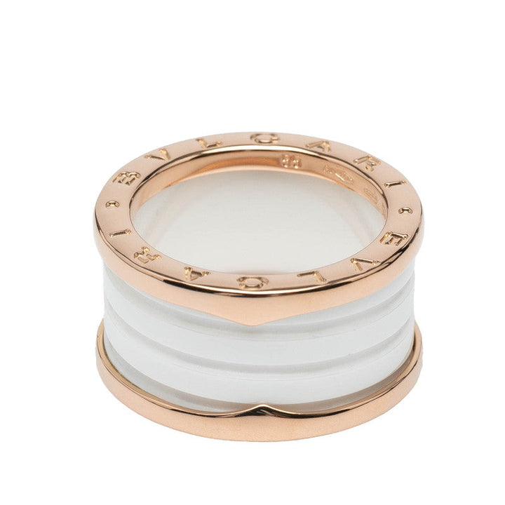 BVLGARI B.zero1 Au750 Pink Gold White Ceramic Ring Size 15