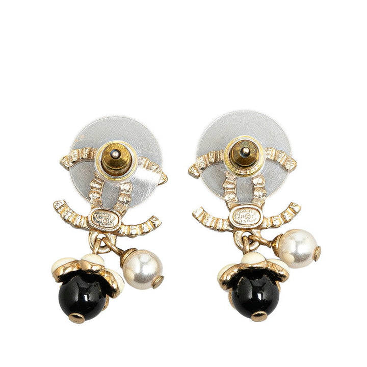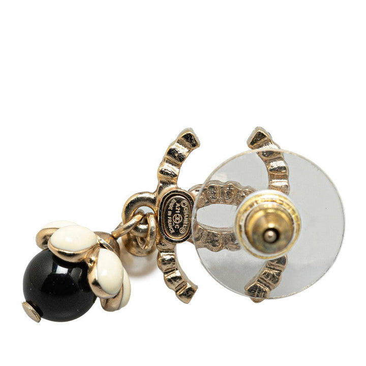 Chanel Gold Plated Coco Mark Rhinestone Flower Motif Earrings A21C