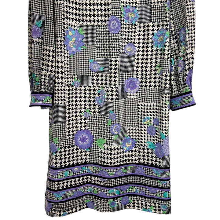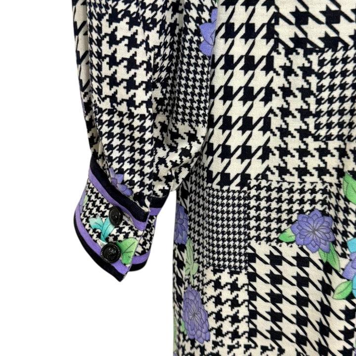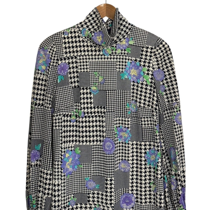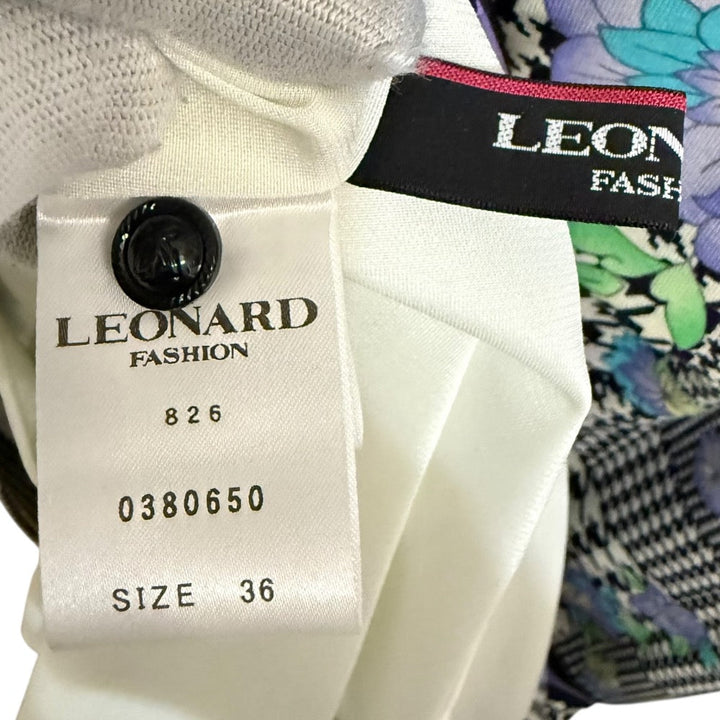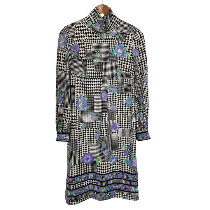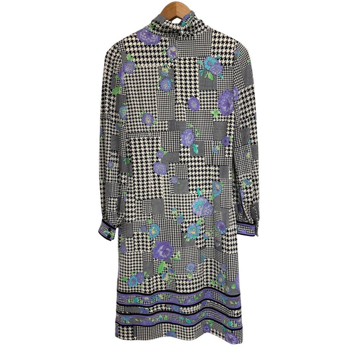 LEONARD FASHION Glen Check Floral High Neck Dress